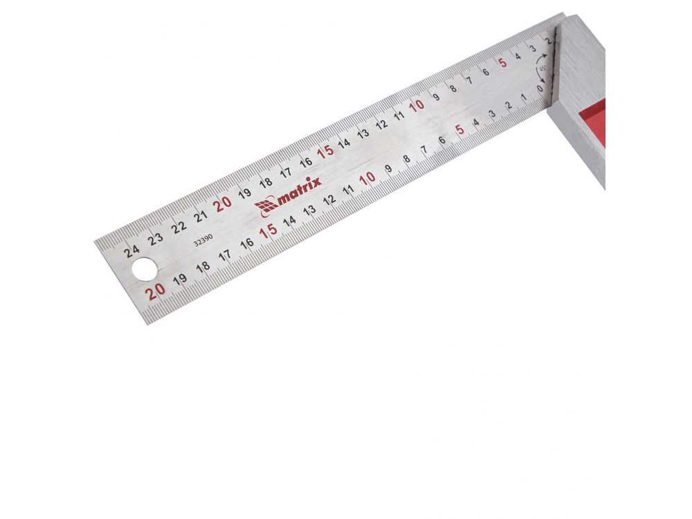 Стальной угольник Matrix 32390 длиной 250 мм, с градуировкой, — измерительный инструмент для построения и контроля углов. Будет полезен для проведения столярных и строительных работ.