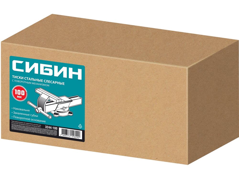 СИБИН 100 мм, Стальные слесарные тиски (3244-100)
