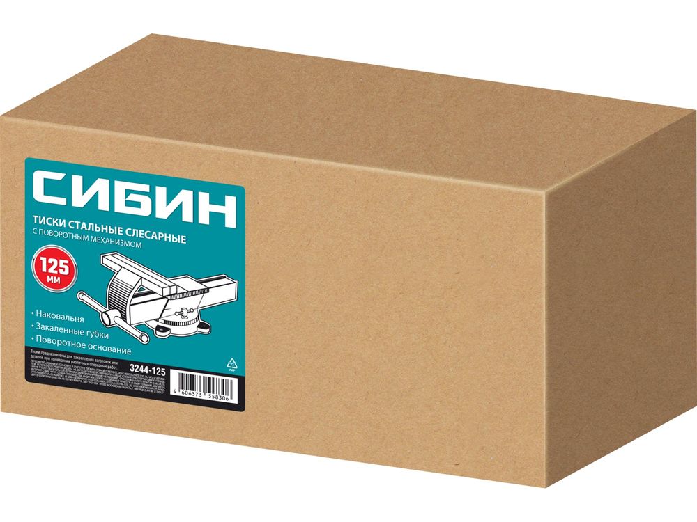 СИБИН 125 мм, Стальные слесарные тиски (3244-125)СИБИН 125 мм, Стальные слесарные тиски (3244-125)
