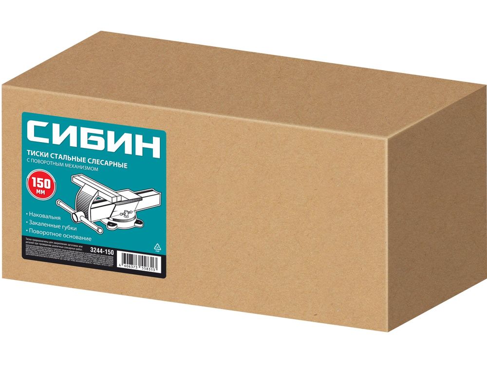 СИБИН 150 мм, Стальные слесарные тиски (3244-150)СИБИН 150 мм, Стальные слесарные тиски (3244-150)