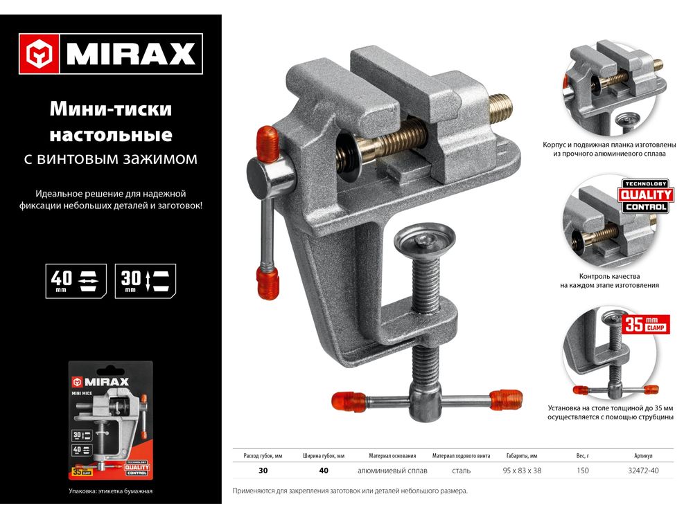 Купить MIRAX, 40 мм, настольные тиски для точных работ