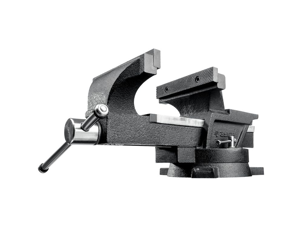 Поворотное основание позволяет перемещать корпус тисков в горизонтально плоскости и фиксировать его в необходимом положение.