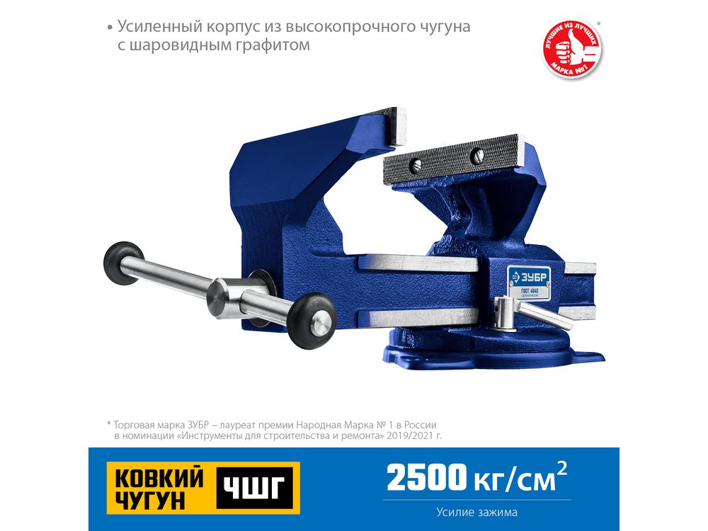 Тиски слесарные ЗУБР изготовлены высококачественного чугуна, соответствуют самым высоким техническим требованиям. Обеспечивают длительную и качественную работу. Предназначены для надежного фиксирования деталей и заготовок.