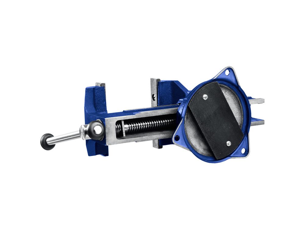 Корпус и подвижная планка изготовлены из высококачественного материала. - Сменные губки изготовлены из специальной стали. Закалены и отшлифованы. - На рабочую поверхность губок нанесено рифление, гарантирующее точность и безопасность крепления деталей. - Наковальня на корпусе тисков обеспечивает возможность выполнения мелких слесарных работ. - Поворотное основание позволяет перемещать корпус тисков в горизонтально плоскости и фиксировать его в необходимом положении при помощи зажимных винтов.