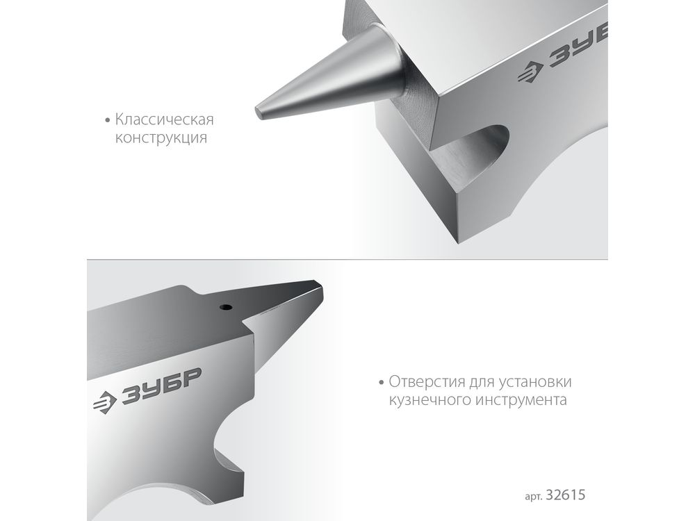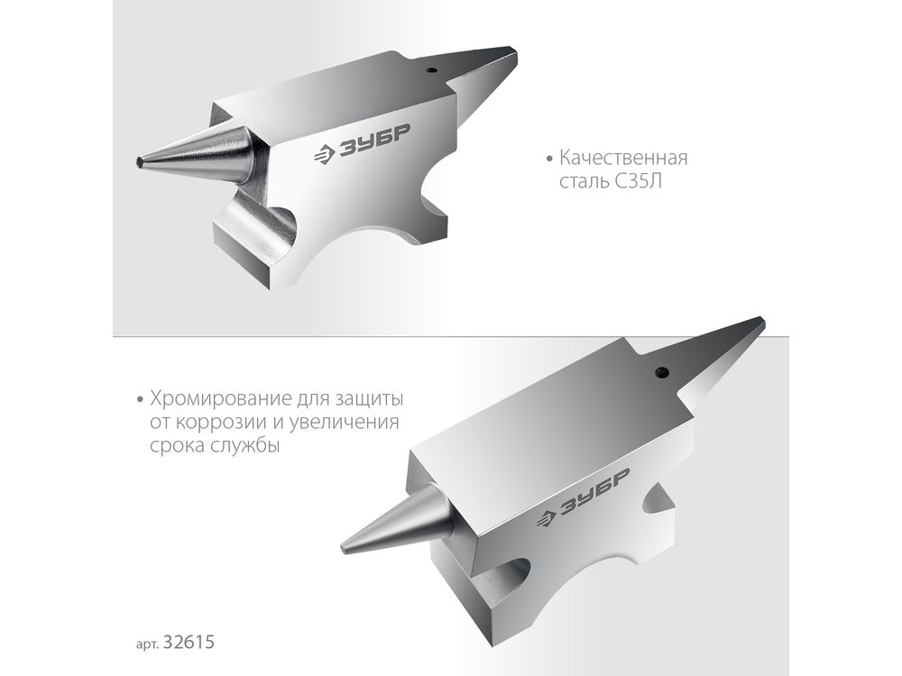Стальная двурогая наковальня ЗУБР (шперак) для ювелирных работ и работы с проволокой . Антикоррозионное покрытие хромированием Сталь С35Л. Поверхность закалена на глубину 0,8-1,5 мм. Твердость рабочей части HB 340-477. Отверстия 3-4 мм для установки инструмента. Увеличенный срок службы. Для точных работ. Серия Профессионал У настольной версии предусмотрены отверстия для жеской фиксации на столе.
