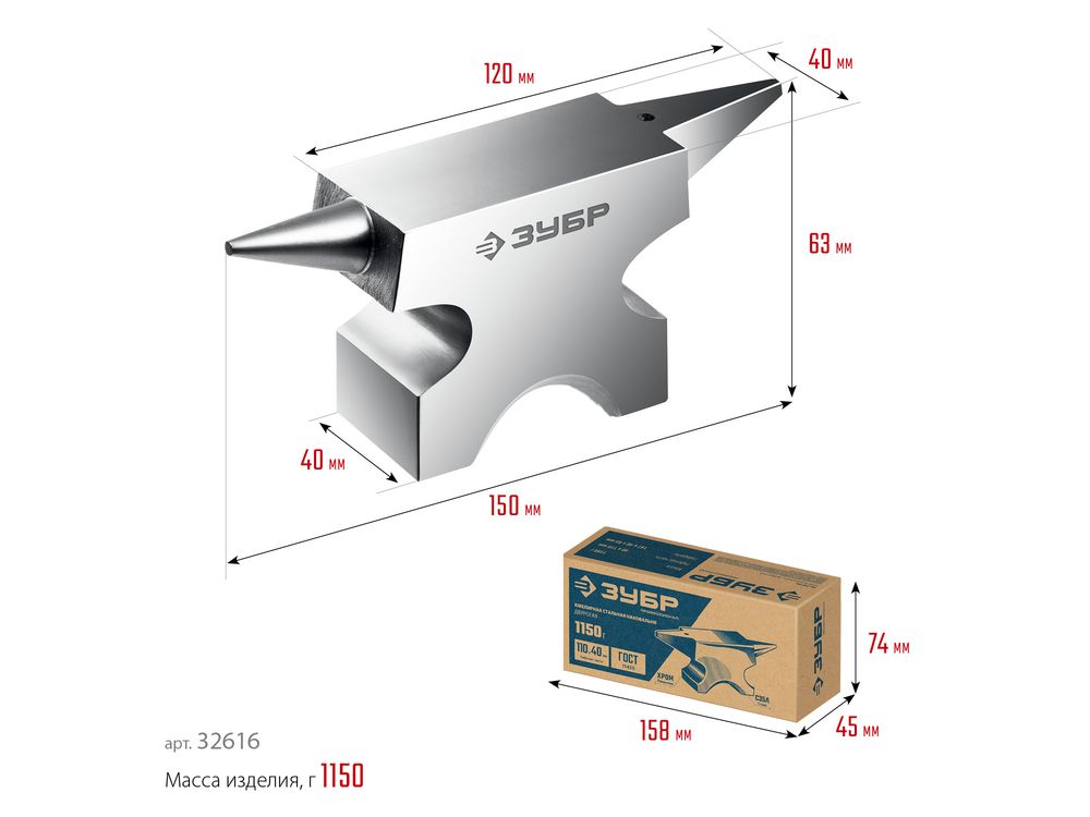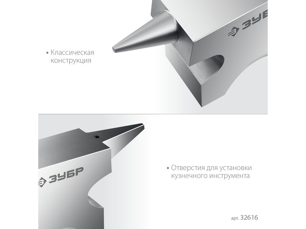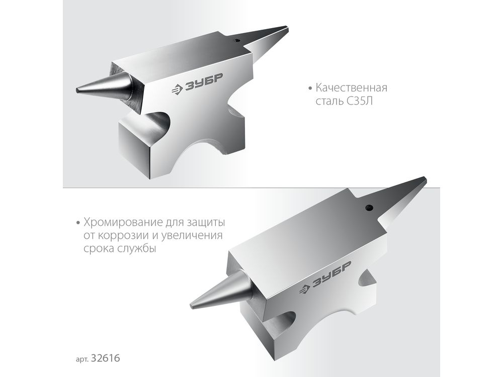 Стальная двурогая наковальня ЗУБР (шперак) для ювелирных работ и работы с проволокой . Антикоррозионное покрытие хромированием Сталь С35Л. Поверхность закалена на глубину 0,8-1,5 мм. Твердость рабочей части HB 340-477. Отверстия 3-4 мм для установки инструмента. Увеличенный срок службы. Для точных работ. Серия Профессионал У настольной версии предусмотрены отверстия для жеской фиксации на столе.