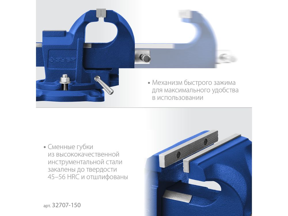 Ручной инструмент Слесарный инструмент Тиски ЗУБР 150 мм, быстрозажимные слесарные тиски, Профессионал (32707-150 )-44