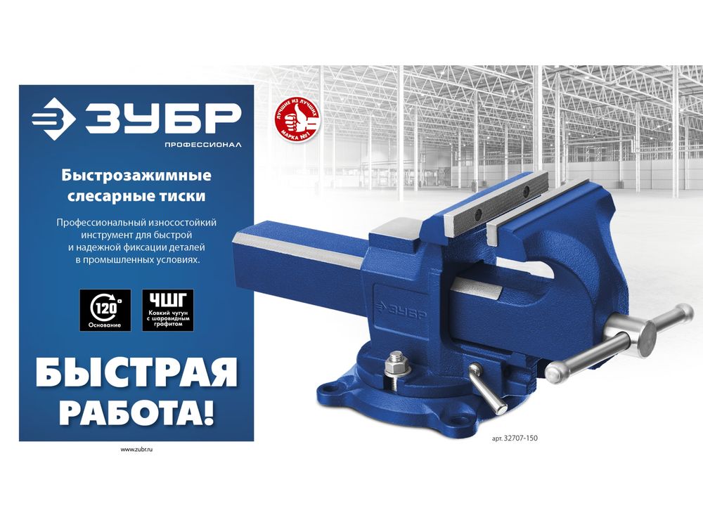 ЗУБР 150 мм, быстрозажимные слесарные тиски, Профессионал (32707-150 )