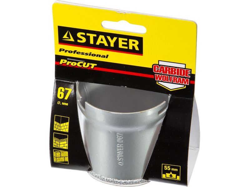 Купить Коронка STAYER PROFESSIONAL кольцевая с карбидно-вольфрамовой крошкой, d 67мм
