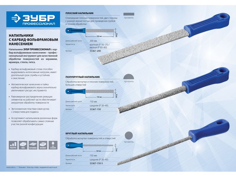 Напильники с карбид-вольфрамовым нанесением ЗУБР - инструмент для многоцелевого использования. Изготовлены из высококачественной стали, имеют длительный срок службы и обеспечивают высокую скорость и качество выполнения работ.