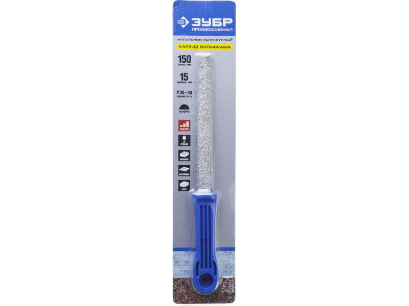 Напильник ЗУБР "ПРОФЕССИОНАЛ" с напылением карбида вольфрама, полукруглый, 150мм
