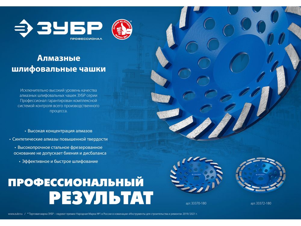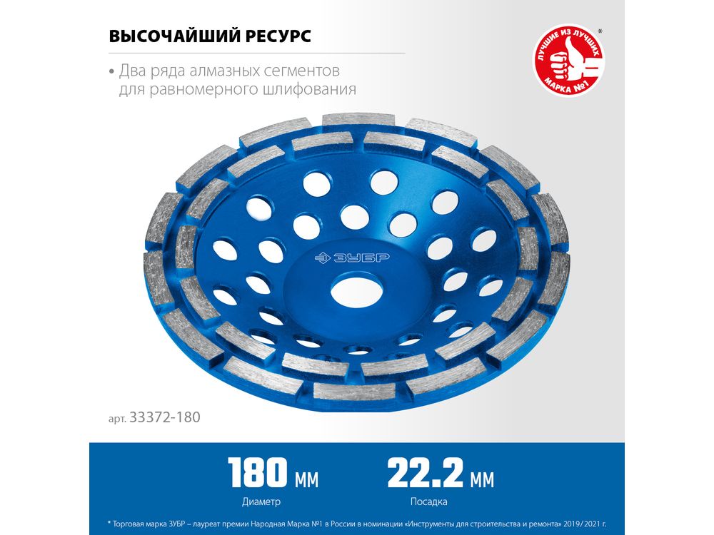 ЗУБР d 180 мм, Двухрядная алмазная шлифовальная чашка, Профессионал (33372-180)