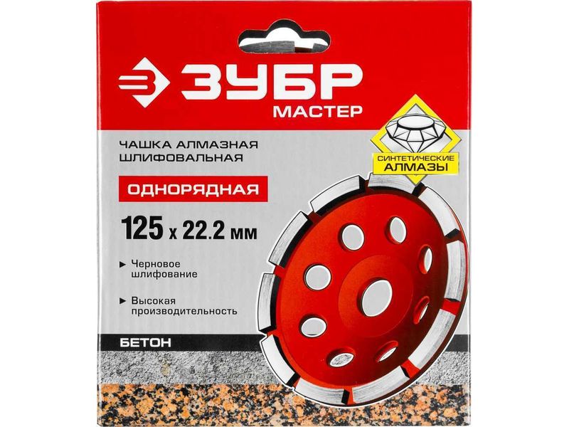 Чашка алмазная шлифовальная по бетону ЗУБР "МАСТЕР" сегментная однорядная, 125мм