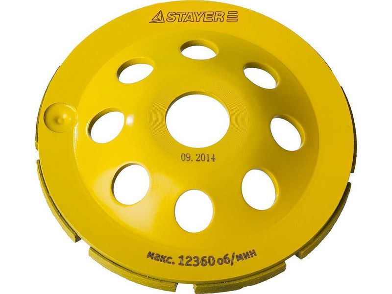 Неоспоримым преимуществом шлифовальных алмазных чашек STAYER серии PROFESSIONAL является их высокая производительность, увеличенный рабочий ресурс и универсальность применения при обработке различных строительных материалов. Применяются для шлифования поверхностей изделий из бетонных материалов, гранита, природного и искусственного камня.