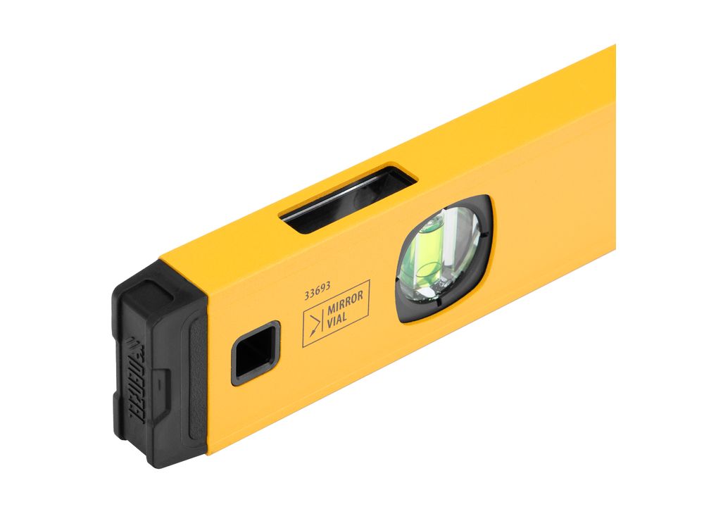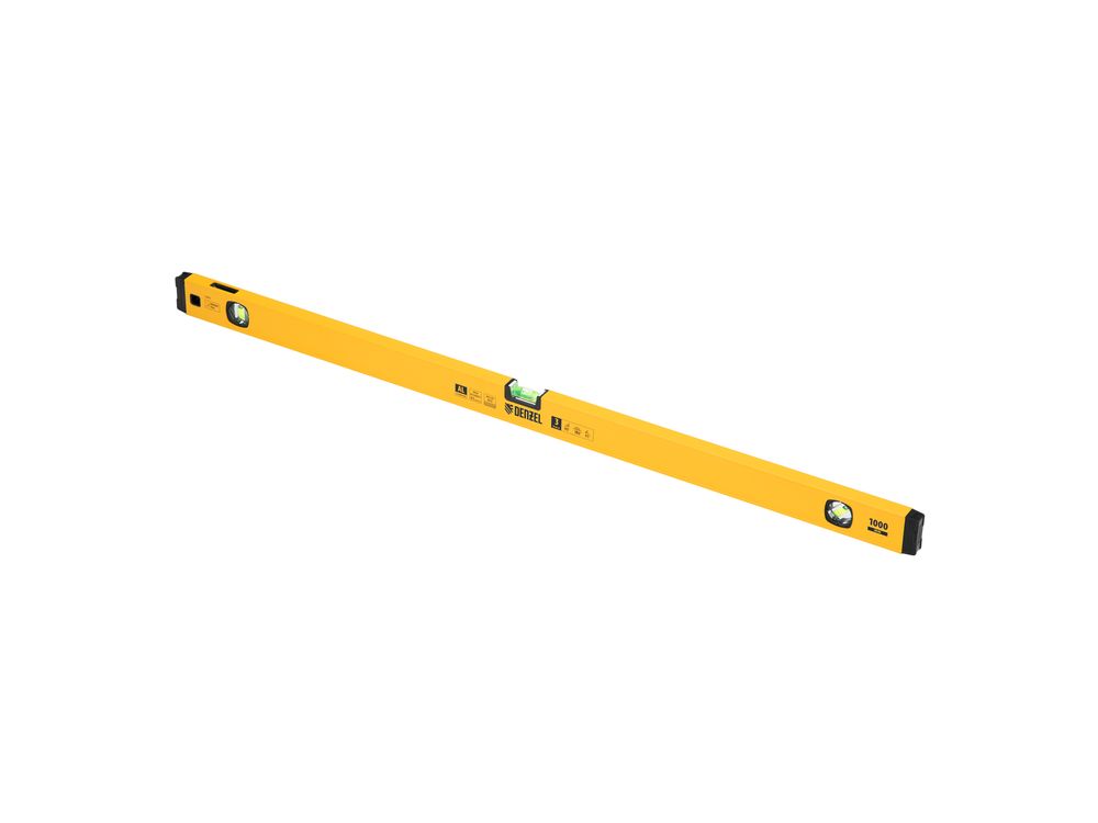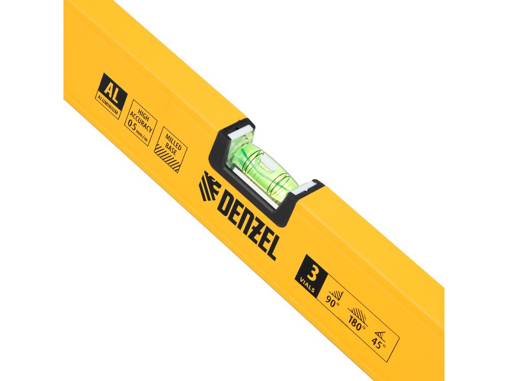 Алюминиевый фрезерованный уровень Denzel 33693 длиной 1000 мм, с магнитом и 3 глазками, из которых 1 зеркальный, предназначен для контроля отклонений от горизонтальной, вертикальной и поверхности под углом 45° с точностью 0,5 мм/м. 3 пузырьковые камеры 90°, 180° и 45° позволяют быстро проверить правильность разметки. Инструмент незаменим при проведении строительных, ремонтных, сантехнических работ.