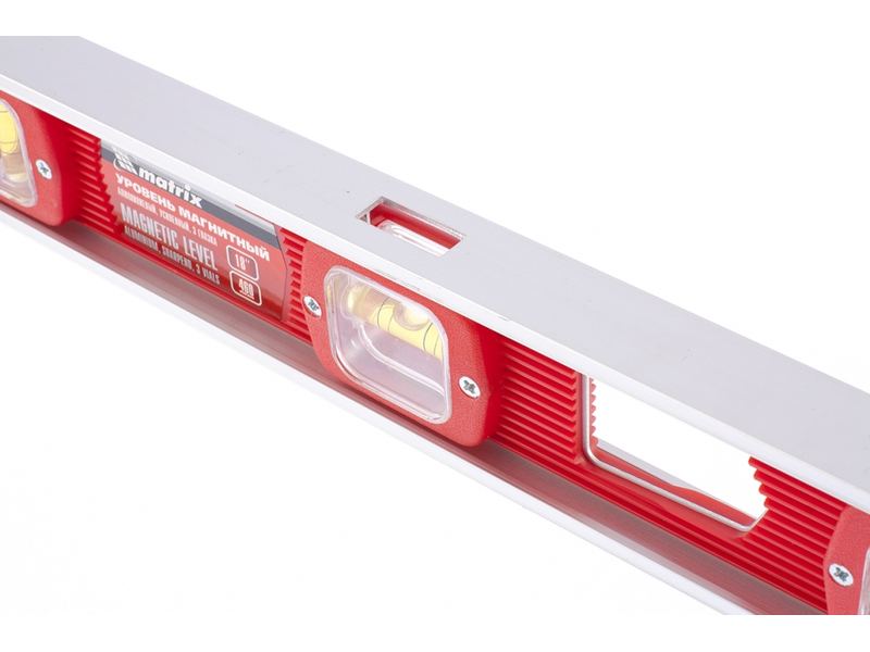 Магнитный уровень Matrix 33701 длиной 460 мм, с 3 глазками, — измерительный инструмент для проверки горизонтальных и вертикальных поверхностей. Пригодится на строительной площадке или в быту для выравнивания поверхностей, при монтаже конструкций, отделке помещений и выполнении других операций. Погрешность не превышает 1 мм на каждый метр (0,057°).