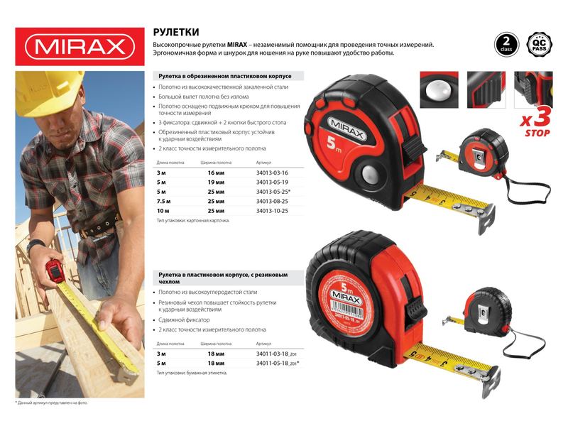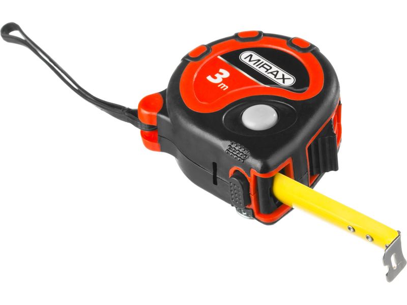 Рулетка MIRAX, 3 стопора, двухкомпонентный пластиковый корпус, 3мх16мм Профессиональная высокопрочная рулетка MIRAX эргономичным двухкомпонентным пластиковым корпусом - незаменимый помощник для проведения надежных и качественных измерений