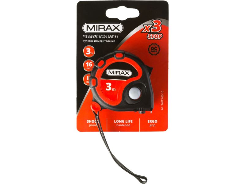 Купить Рулетка MIRAX, 3 стопора, двухкомпонентный пластиковый корпус, 3мх16мм