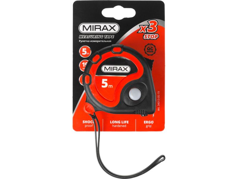 Купить Рулетка MIRAX, 3 стопора, двухкомпонентный пластиковый корпус, 5мх19мм