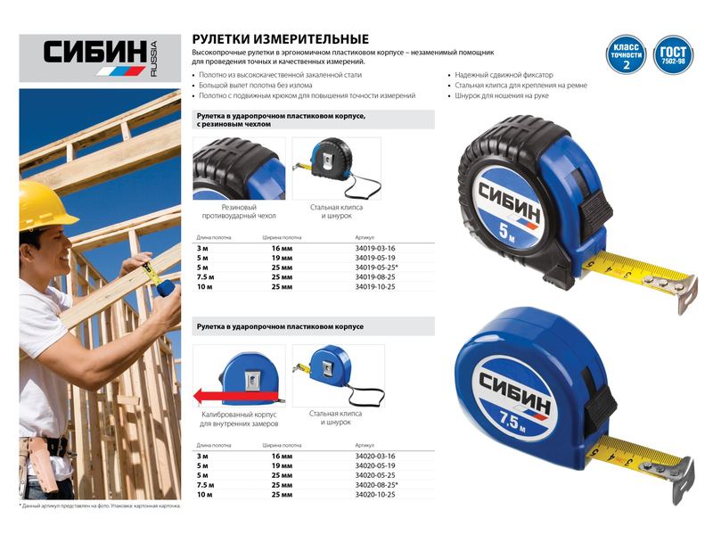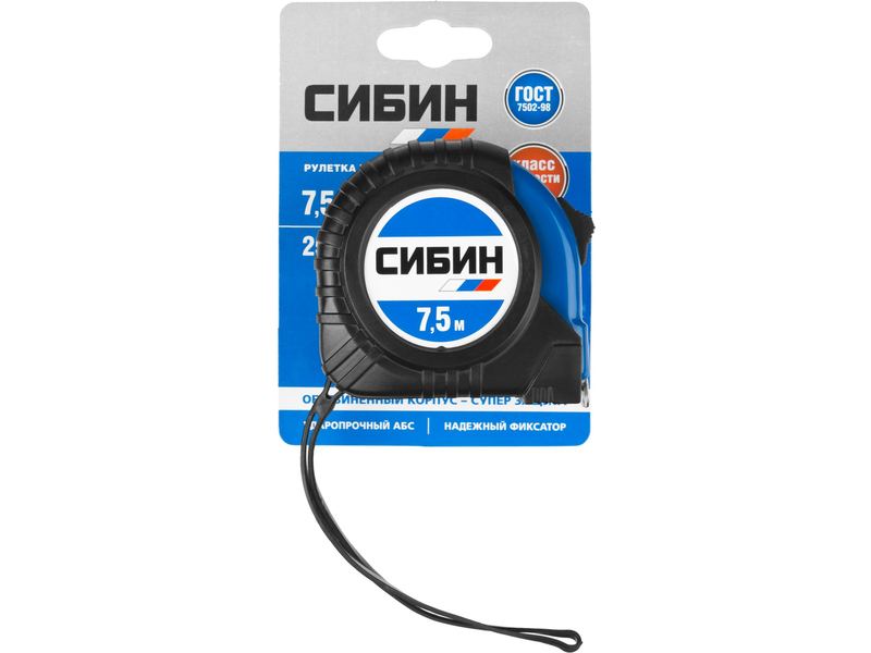 Профессиональная высокопрочная рулетка СИБИН с эргономичным обрезиненным пластиковый корпусом - незаменимый помощник для проведения надежных и качественных измерений