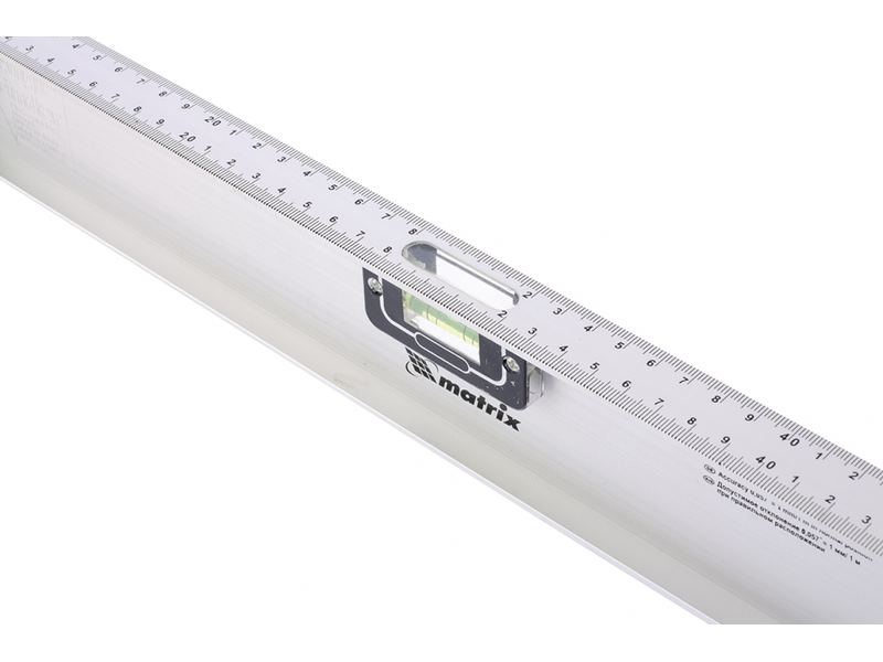 Алюминиевый уровень Matrix «Рельс» 34023 длиной 600 мм имеет 3 глазка: 2 для проверки отклонений от заданной вертикали и горизонтали и 1 поворотный для проверки наклонных поверхностей.
