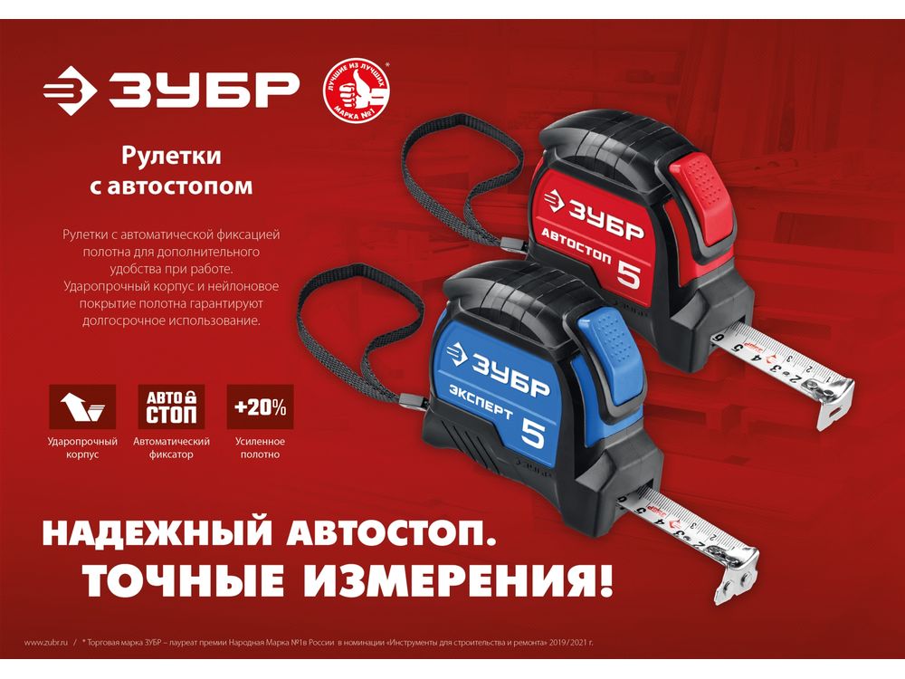 Купить Рулетка с автостопом ЗУБР Автостоп 5м х 25мм