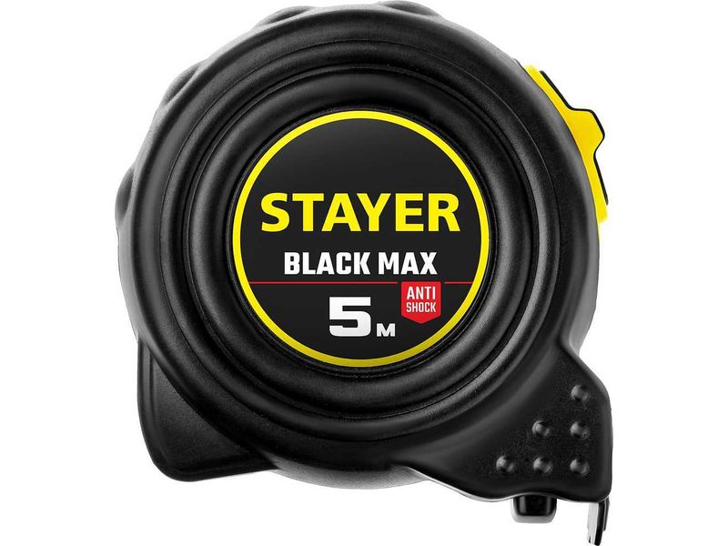 Купить STAYER BlackMax 5м / 25мм рулетка в ударостойком полностью обрезиненном корпусе и двумя фиксаторами