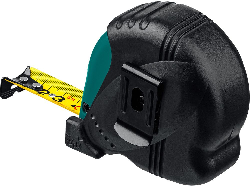Профессиональная рулетка c ударостойким обрезиненным корпусом и нейлоновым покрытием полотна