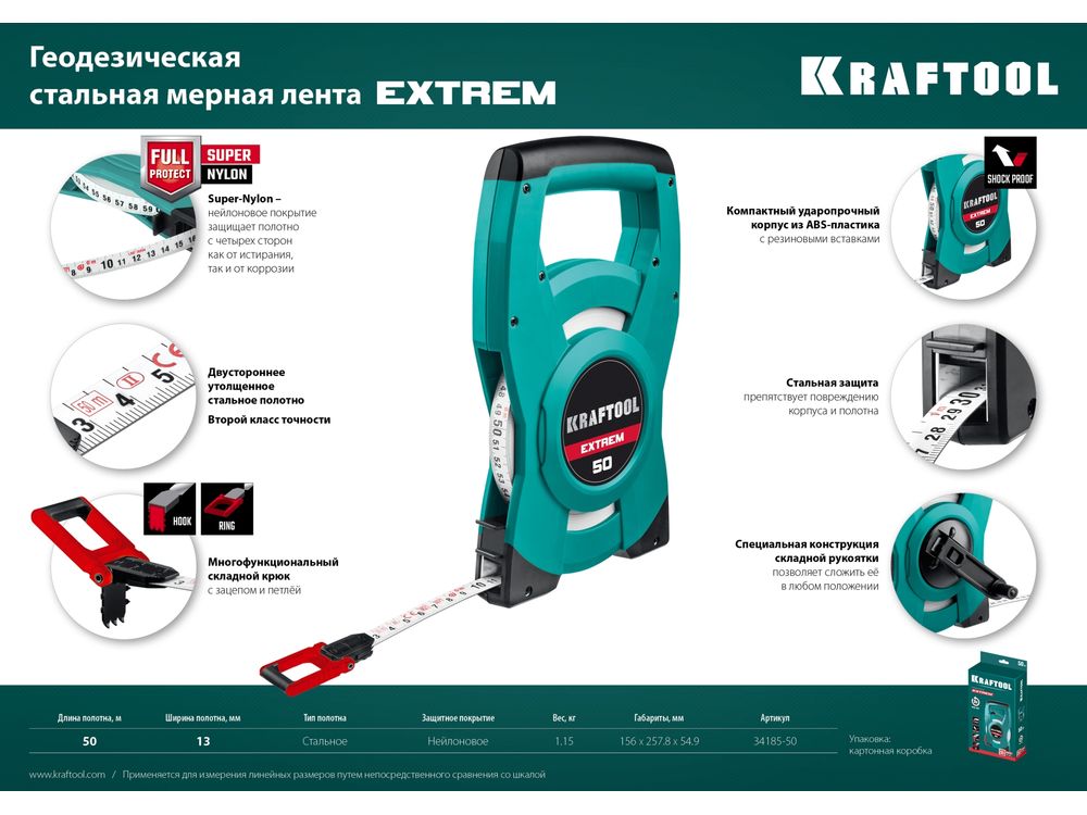 Купить KRAFTOOL EXTREM 50 м геодезическая стальная мерная лента