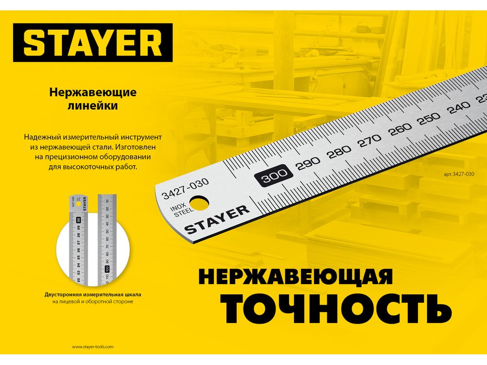 STAYER длина 0.3 м, нержавеющая линейка, Professional (3427-030)