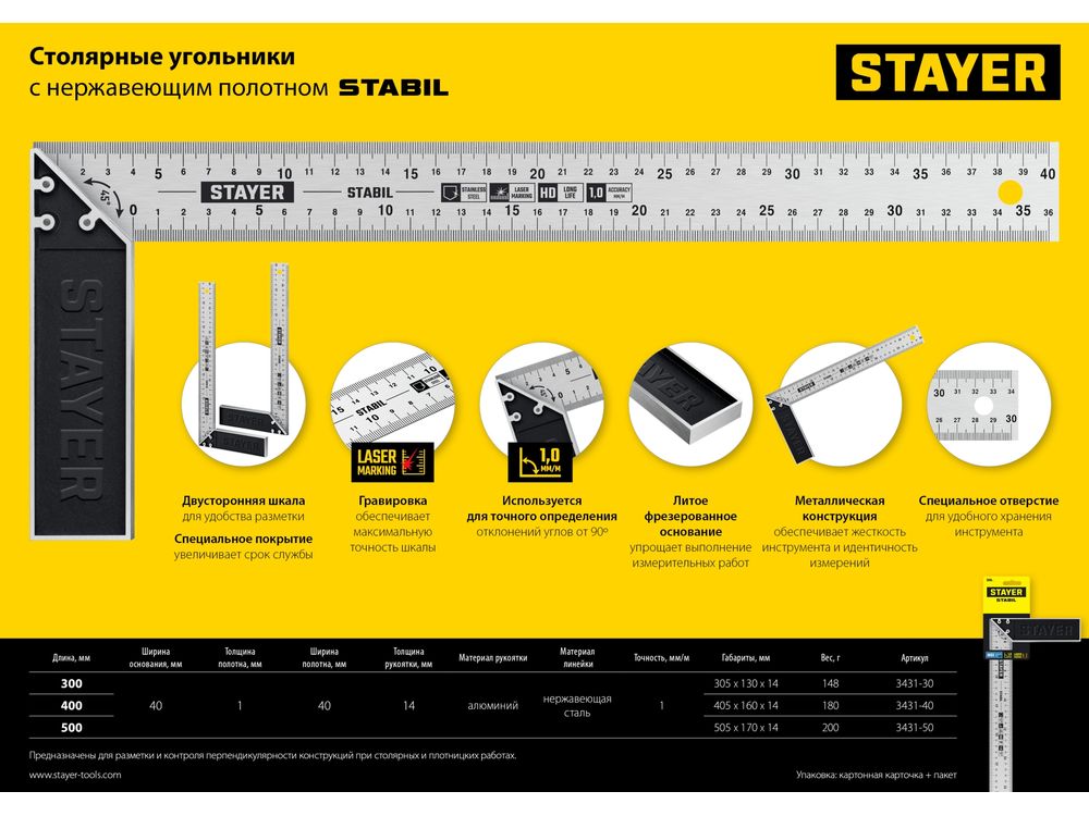 STAYER 300 мм, столярный угольник, Professional (3431-30)