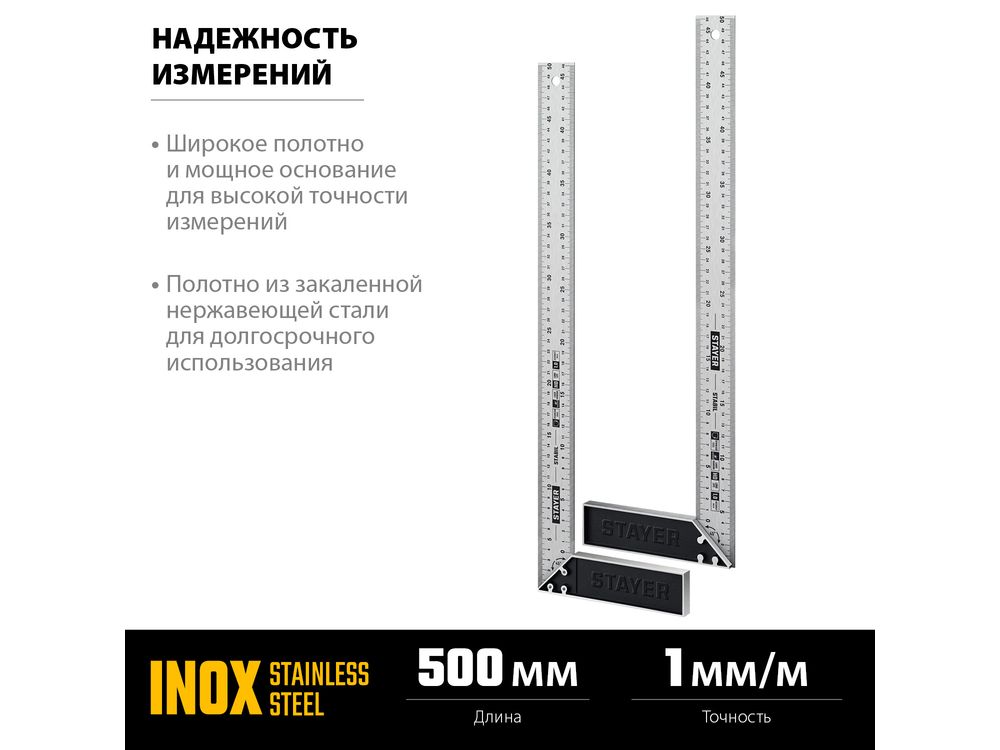 Купить STAYER STABIL 500 мм столярный угольник с нержавеющим полотном