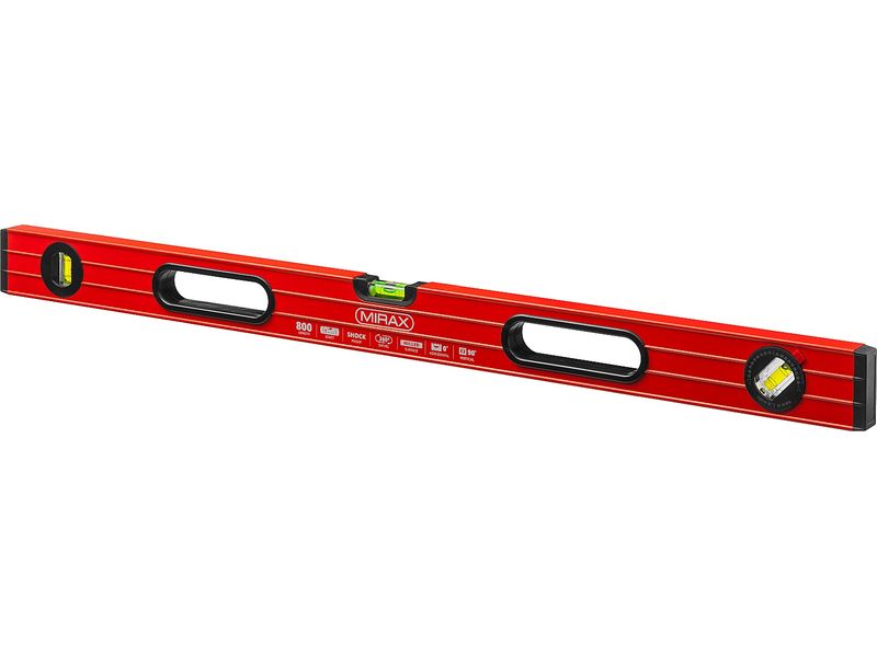 Купить Уровень коробчатый усиленный MIRAX, фрезерованная поверхность, утолщенный профиль, 3 противоударных ампулы (1 поворотная на 360 град), с ручками, 80 см