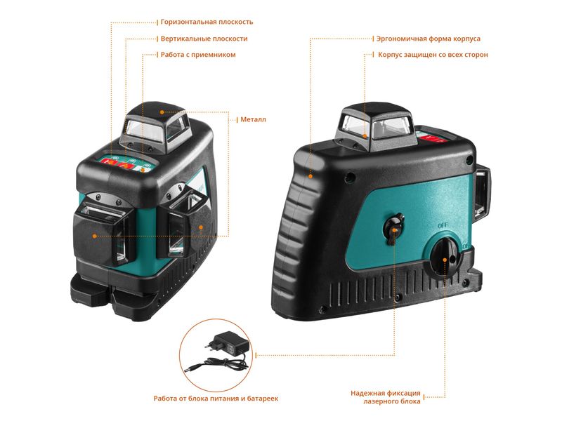 • Возможность поочередного отключения лазерных лучей позволяет оставлять только необходимую для работы.