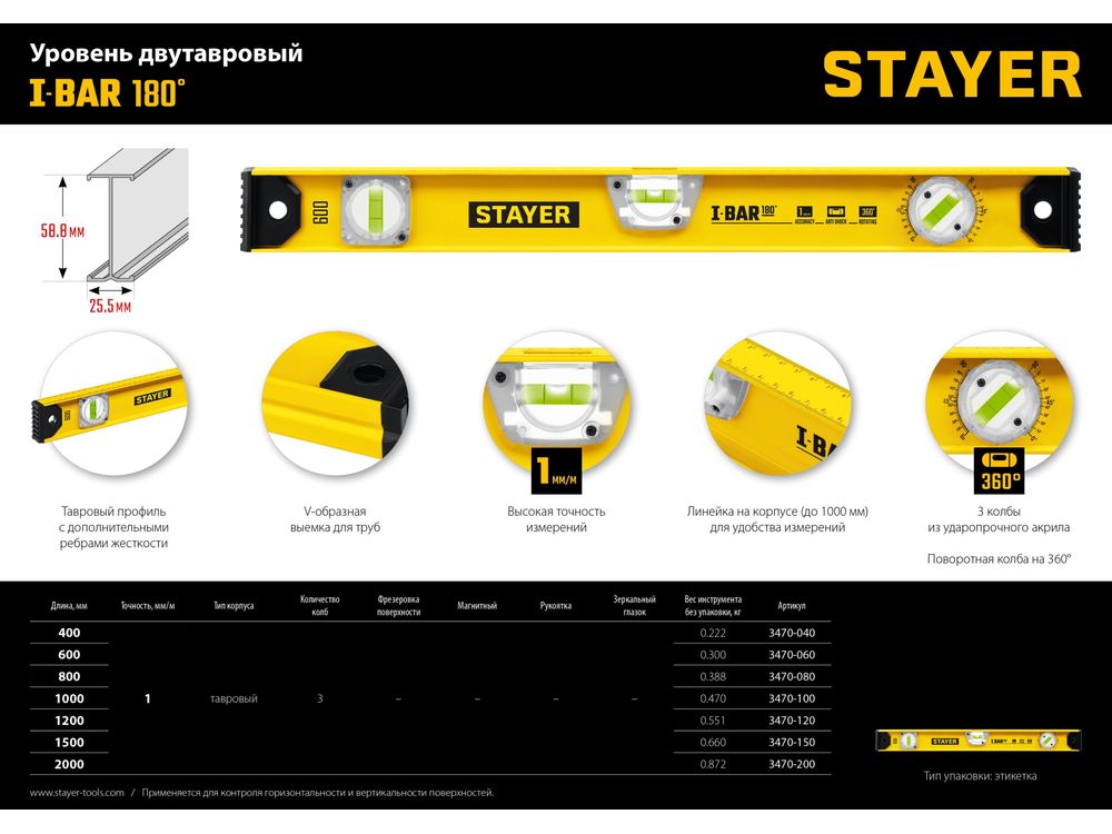 STAYER I-Bar180 1000 мм двутавровый уровень-719