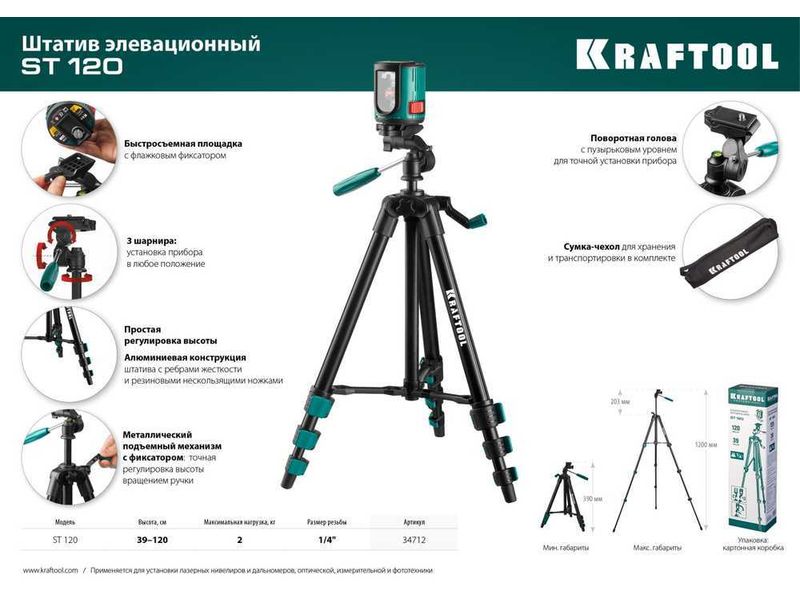 Купить ST 120 штатив элевационный, KRAFTOOL
