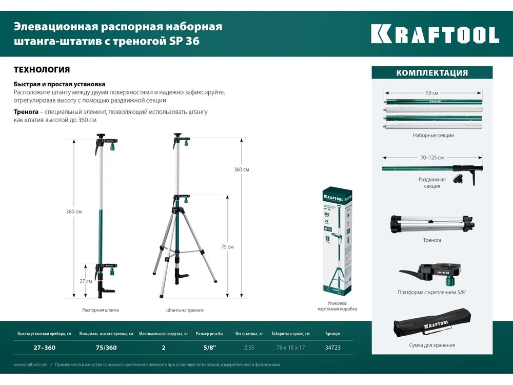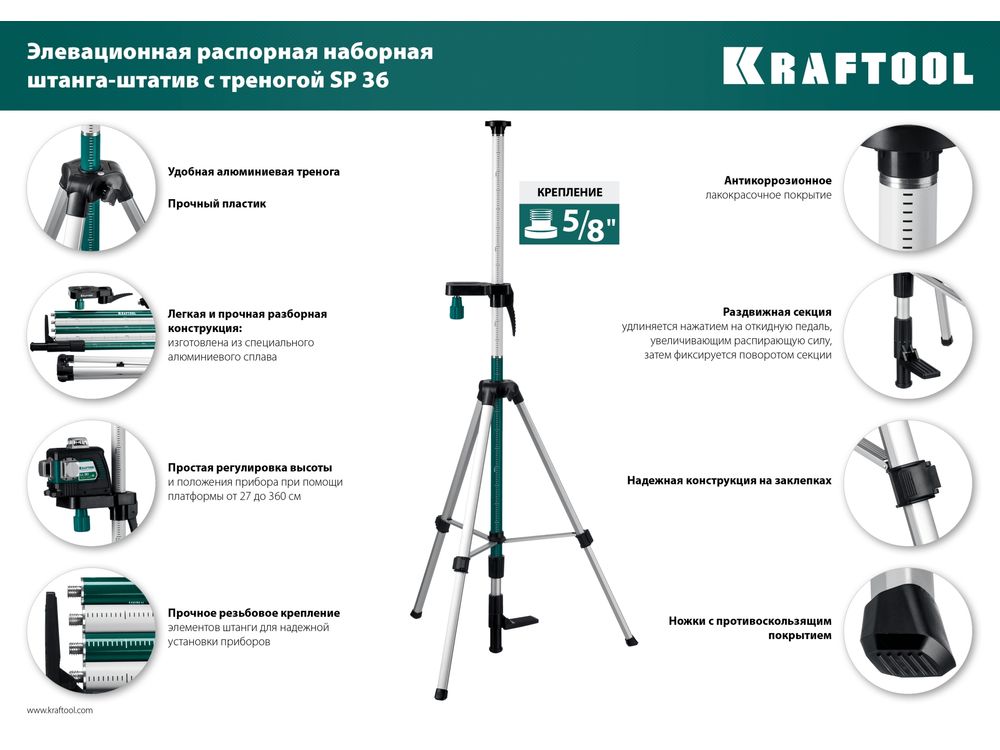 Профессиональный инструмент для работы с лазерным, оптическим и фотоинструментом. Выполнена из алюминиевого сплава, благодаря чему имеет небольшой вес. А за счёт разборной конструкции штангу легко носить и легко с ним работать.