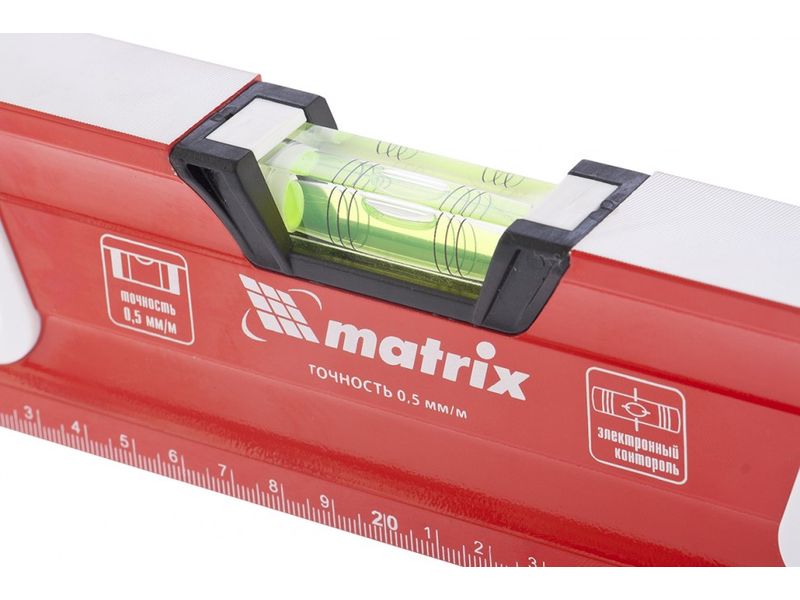 Уровень алюминиевый фрезерованный Matrix 34736 длиной 2000 мм, с магнитной полосой и 2-компонентными рукоятками, 3 глазками и 1 зеркальным отражателем, — измерительный инструмент для контроля отклонений поверхностей от горизонтали, вертикали и угла 45°. Используется для выполнения работ, требующих высокой точности. Преимущества