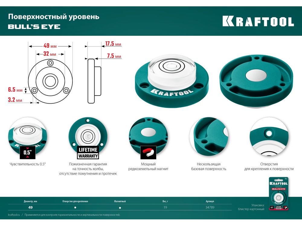 Поверхностный магнитный уровень Kraftool "Бычий глаз" Bulls Eye-719