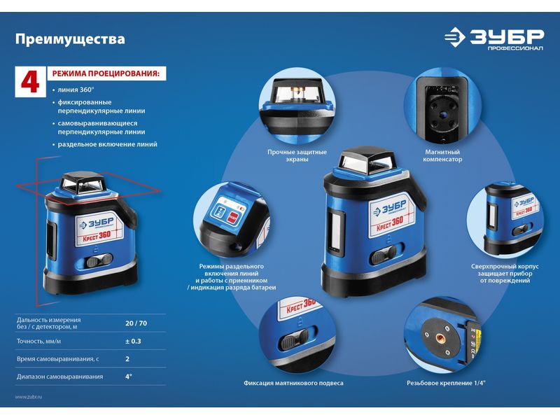 Функция самовыравнивания устраняет необходимость настройки, гарантирует максимальную точность при разметке.