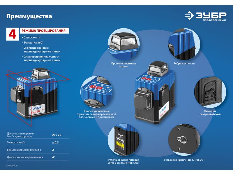 Функция самовыравнивания устраняет необходимость настройки, гарантирует максимальную точность при разметке.