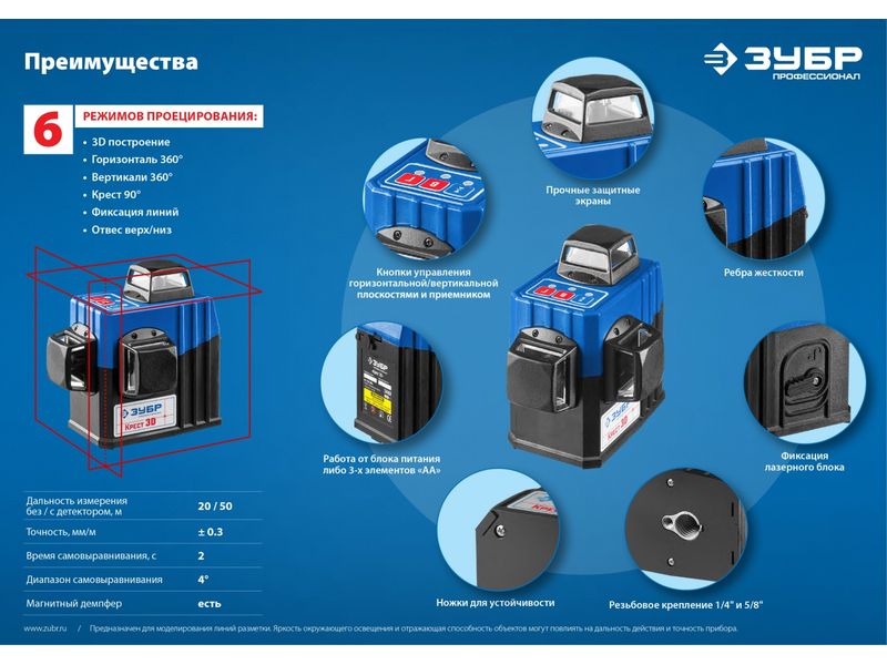 Функция самовыравнивания устраняет необходимость настройки, гарантирует максимальную точность при разметке.