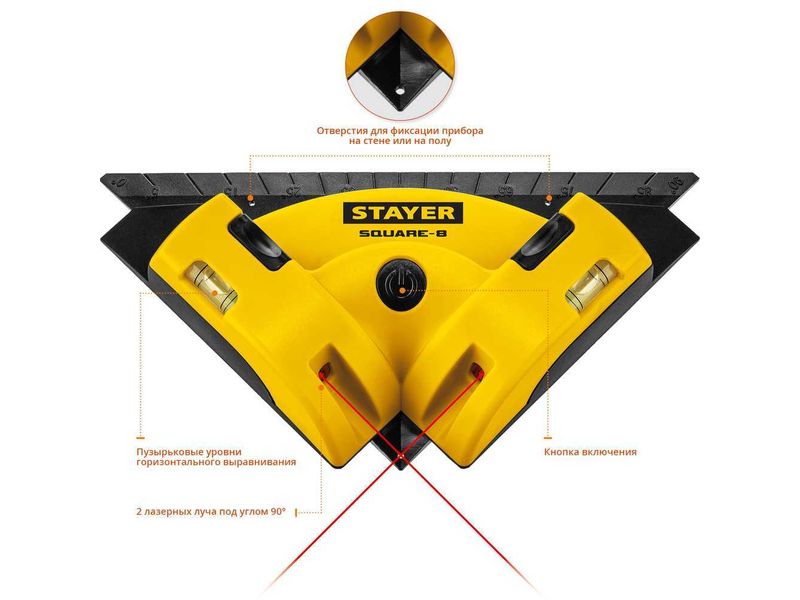 STAYER SQUARE-8 угольник лазерный для кафеля, 8 м, точн. +/-0,4 мм/м,