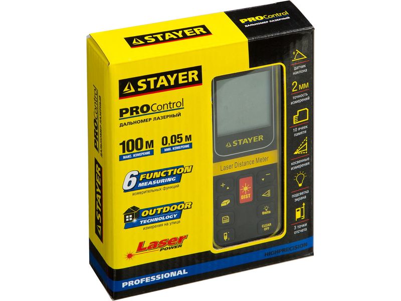 Компактный лазерный дальномер Stayer SDL100 – это высокоточный прибор для быстрого и простого измерения линейных расстояний, площадей и объёмов. Позволяет проводить весь цикл измерений одному человеку, значительно ускоряя выполнение разметочных работ и повышая точность полученных данных.