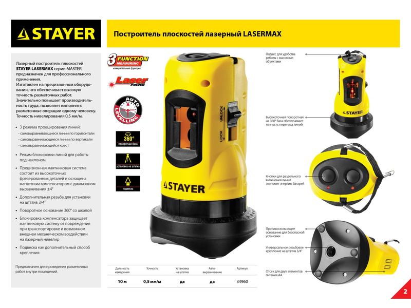 Профессиональный измерительный инструмент. Максимальная точность, яркость и чёткость линий для высококачественных разметочных работ.