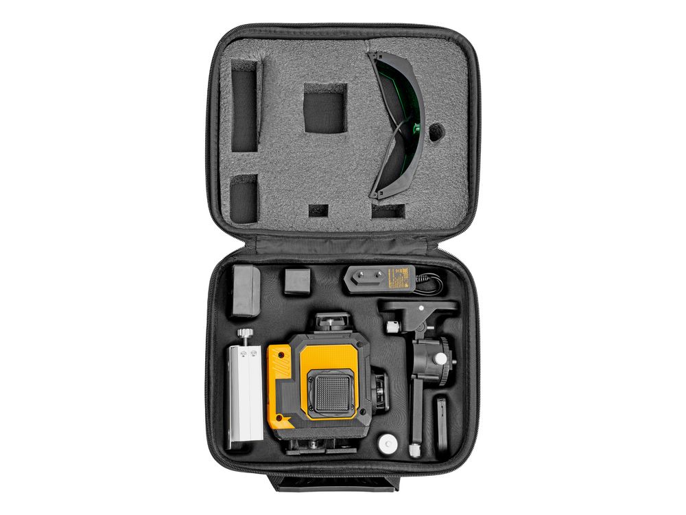 Удобное хранение и транспортировка — лазерный уровень с аксессуарами упакован в кейс.