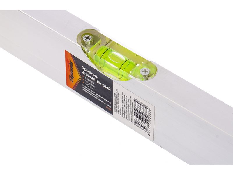 Алюминиевый уровень Sparta 35104 длиной 400 мм, с 2 глазками и линейкой, рассчитан на применение в быту и в производственных условиях. Он поможет добиться точного выстраивания разметочных линий для последующей установки конструкций, полок, укладки облицовочных материалов и т.д. Две пузырьковые ампулы обеспечивают точный контроль отклонений поверхностей от горизонтальной и вертикальной плоскостей.,Для определения отклонения вертикали 90 градусов необходимо использовать пузырьковую ампулу только в верхнем положении уровня. Только базовая поверхность является рабочей (противоположная ампуле 180 градусов).