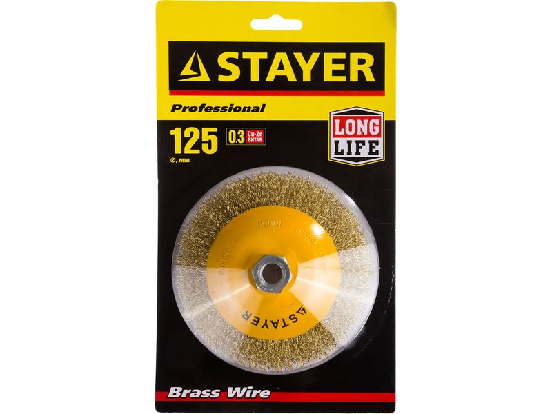 Щетка коническая для УШМ, витая стальная латунированная проволока 0,3мм, 125ммхМ14-298