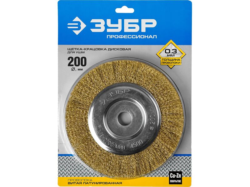 ЗУБР "Профессионал". Щетка дисковая для УШМ, витая стальная латунированная проволока 0,3мм, 200х22мм-298