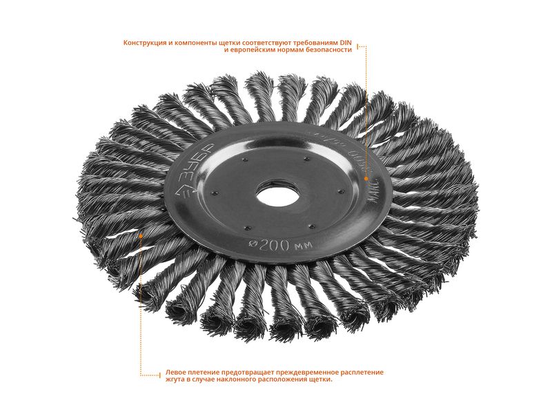 ЗУБР "Профессионал". Щетка дисковая для УШМ, плетеные пучки стальной проволоки 0,5мм, 200х22мм-298